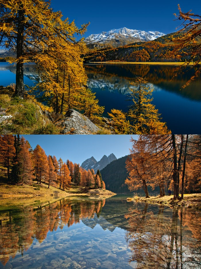 瑞士的秋,是叶子的国度,红黄绿相间的色彩,斑驳得像幅浓墨重彩的油画,绚丽耀眼。特别是绿水红叶相映,生成一处诗情画意的曼妙秋季胜图。